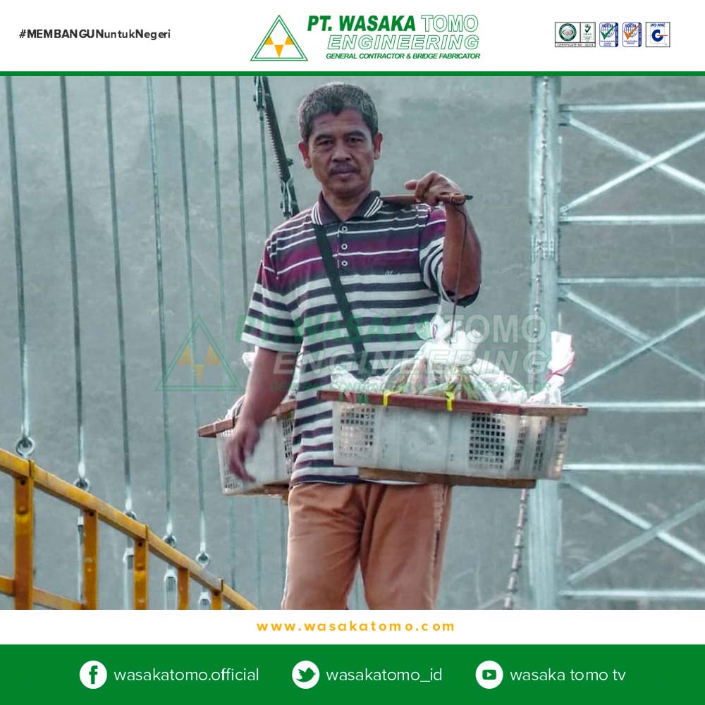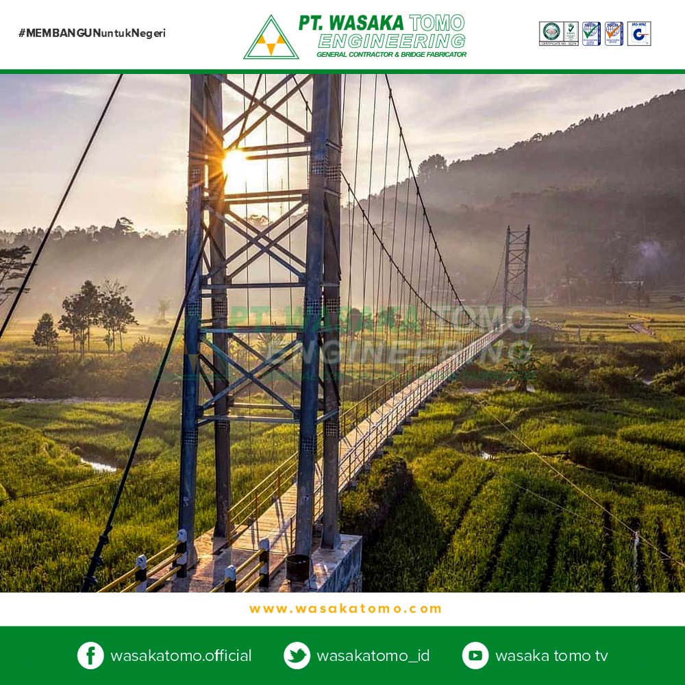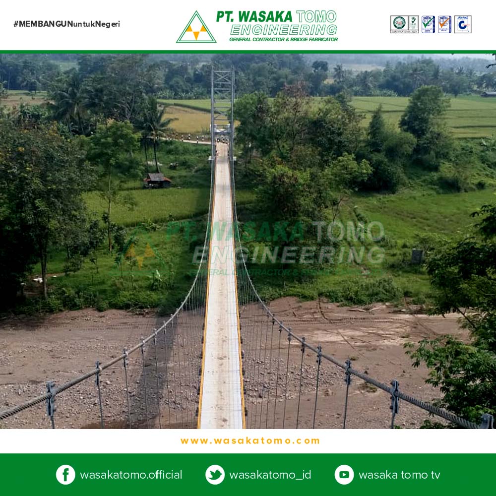 Jembatan gantung adalah jembatan yang berfungsi sebagai pemikul langsung beban lalu lintas yang melewati jembatan tersebut, terdiri dari lantai jembatan, gelagar pengaku, batang penggantung, kabel pemikul dan pagar pengaman. Seluruh beban lalu lintas dan gaya-gaya yang bekerja dipikul oleh sepasang kabel pemikul yang menumpu di atas 2 pasang menara dan 2 pasang blok angkur Surat Edaran Menteri PU, 2010.